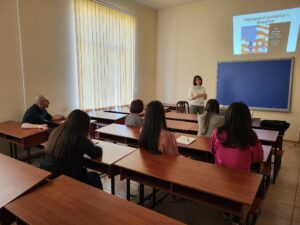 The series of lectures organized by the American Studies Center YSU for the students of”American Studies” MA program continues within the framework of the “American Studies” grant program. On November 14, 2022 researcher of the American Studies Center YSU, associate professor Yuliana Melkumyan give a lecture on “Propaganda tools and tricks” for the students of the Center.The speaker presented the historical evolution of the formation and development of propaganda as a tool to influence the public consciousness, as well as the traditional and modern mechanisms of propaganda.At the end of the lecture, students were given the opportunity to ask questions and have a discussion.
